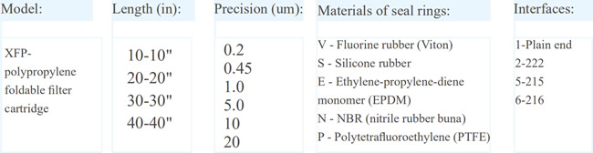Polypropylene foldable filter cartridge is made of 100% pure polypropylene material certified by safety test. The absolute filtration precision is as high as 99.9%. It can be used for clarification filtration of liquid or prefiltration of membrane filter cartridge.