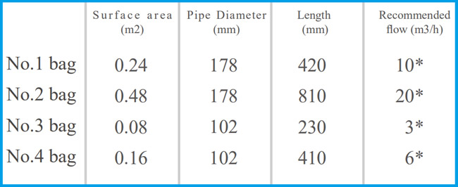 * Actual flow and fluid viscosity, pore size of the filter material, filtration efficiency, etc., are closely related. If you have any questions, please call us.